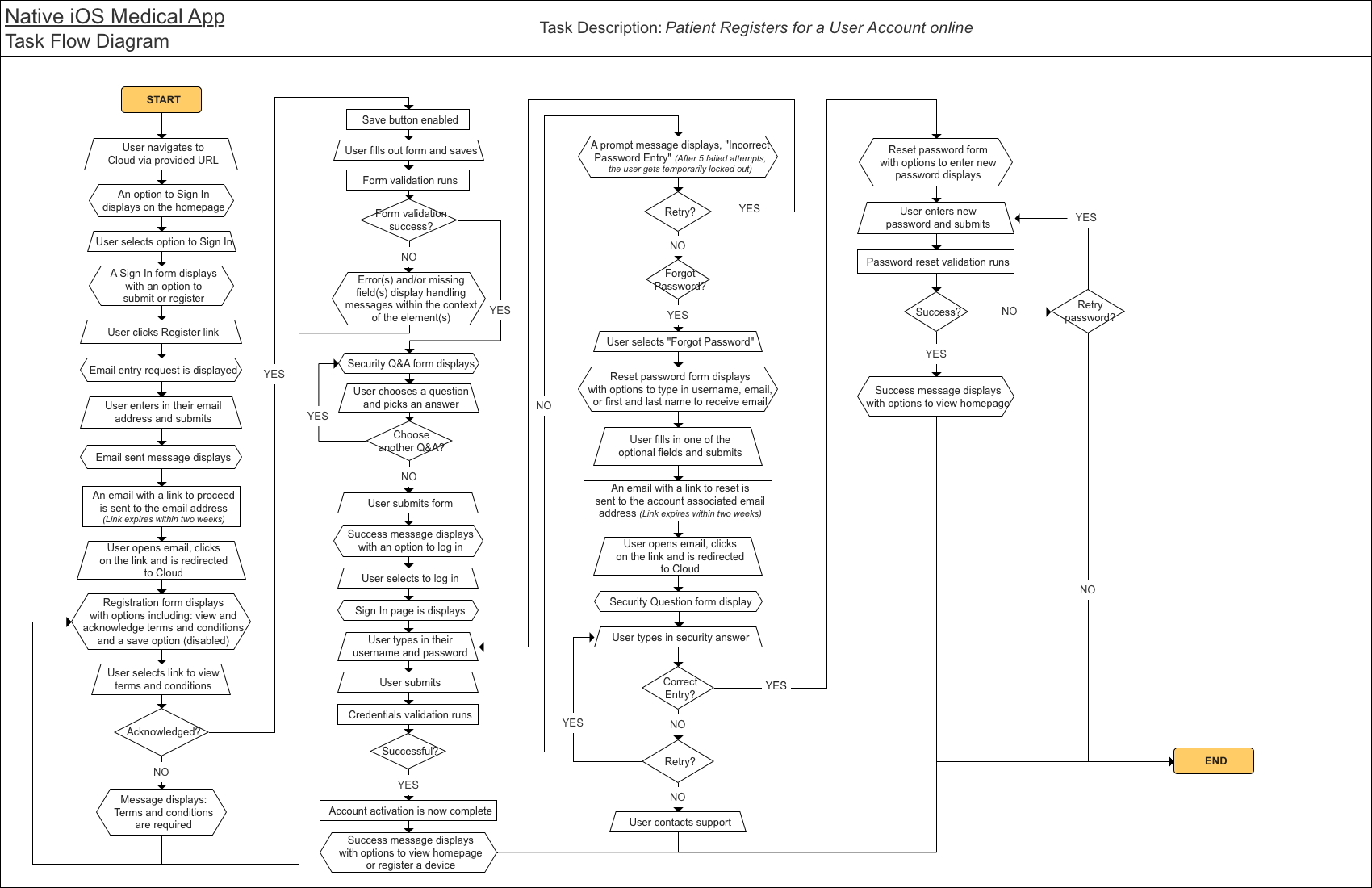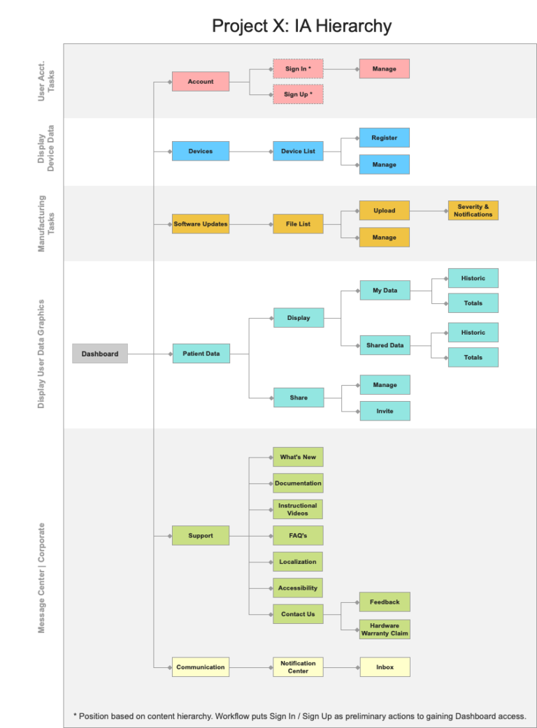 Using the task flow diagrams, we could frame the hierarchy for the information architecture. This would become foundational in determination of optimum navigation methods. It would also help identify areas where content could be best split across multiple views on a mobile device with a limited display size.
